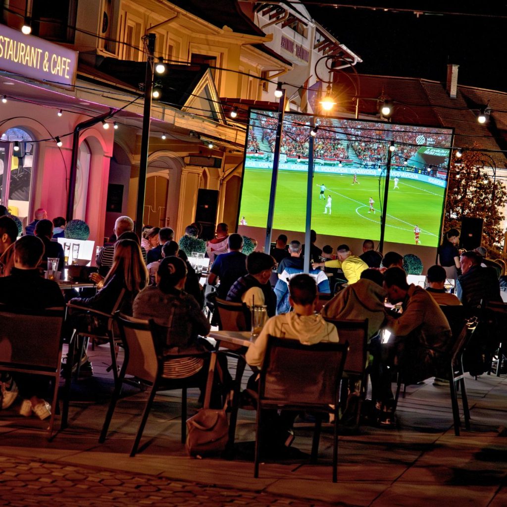 A tágas, hangulatos teraszon a nyári estéket még különlegesebbé teszik az óriás kivetítőkön közvetített mérkőzések. Baráti társaságoknak, sportkedvelőknek tökéletes választás egy jó ital és finom ételek mellé.