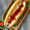 hotdog kifli, prémium frankfurti virsli, ketchup/mustár/majonéz