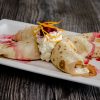 gyümölcsraguval, csokoládéöntettel, vanília fagylalttal, porcukorszórással