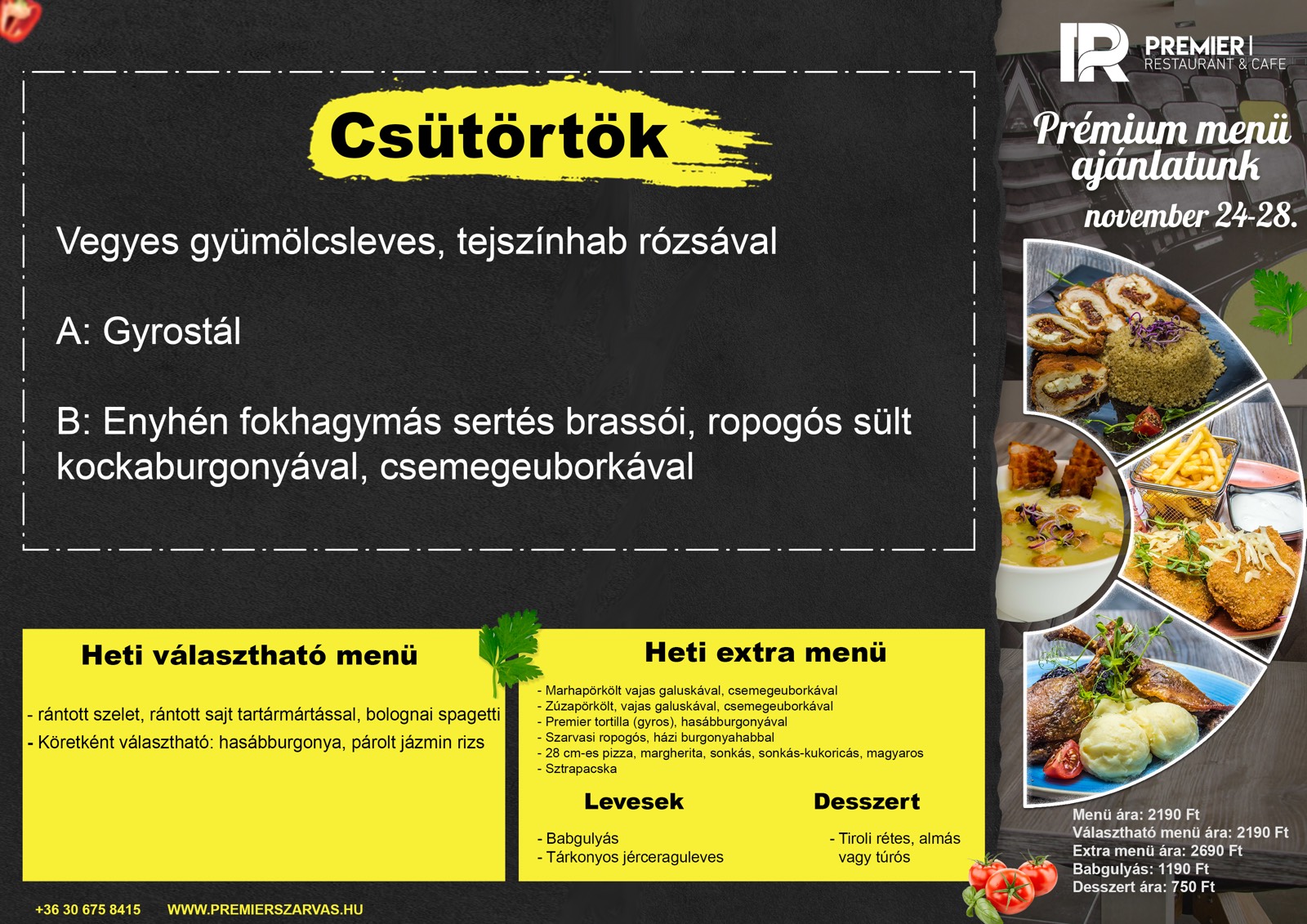 Nap ajánlatunk mellett kérhető egyéb ételek: Rántott szelet / Rántott sajt tartármártással / Bolognai spagetti. Hozzá köretként választható: hasábburgonya vagy párolt jázmin rizs.