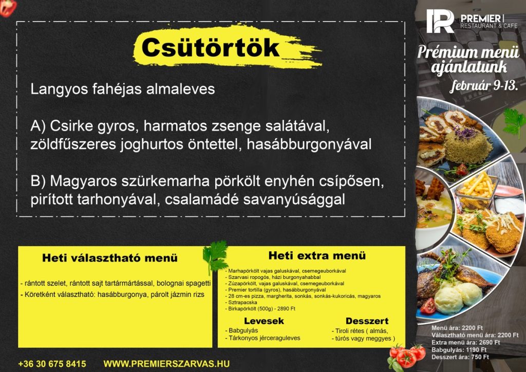 A Premier ételeit online is megrendelheted, és házhozszállítással élvezheted otthonod kényelmében.