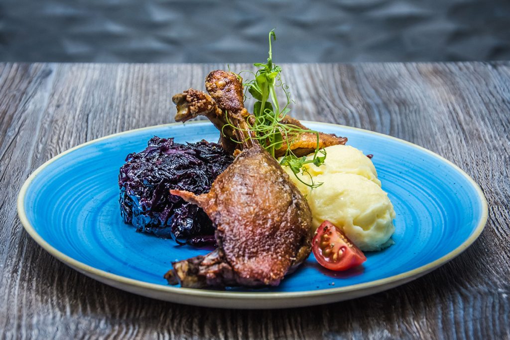 mézes-narancsos párolt lilakáposztával, snidlinges házi burgonyahabbal 7