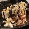 3 féle piskótából, rumos vaníliás krémmel, karamelizált diószemek, csoki kekszmorzsa, csokoládé öntet, tejszínhab