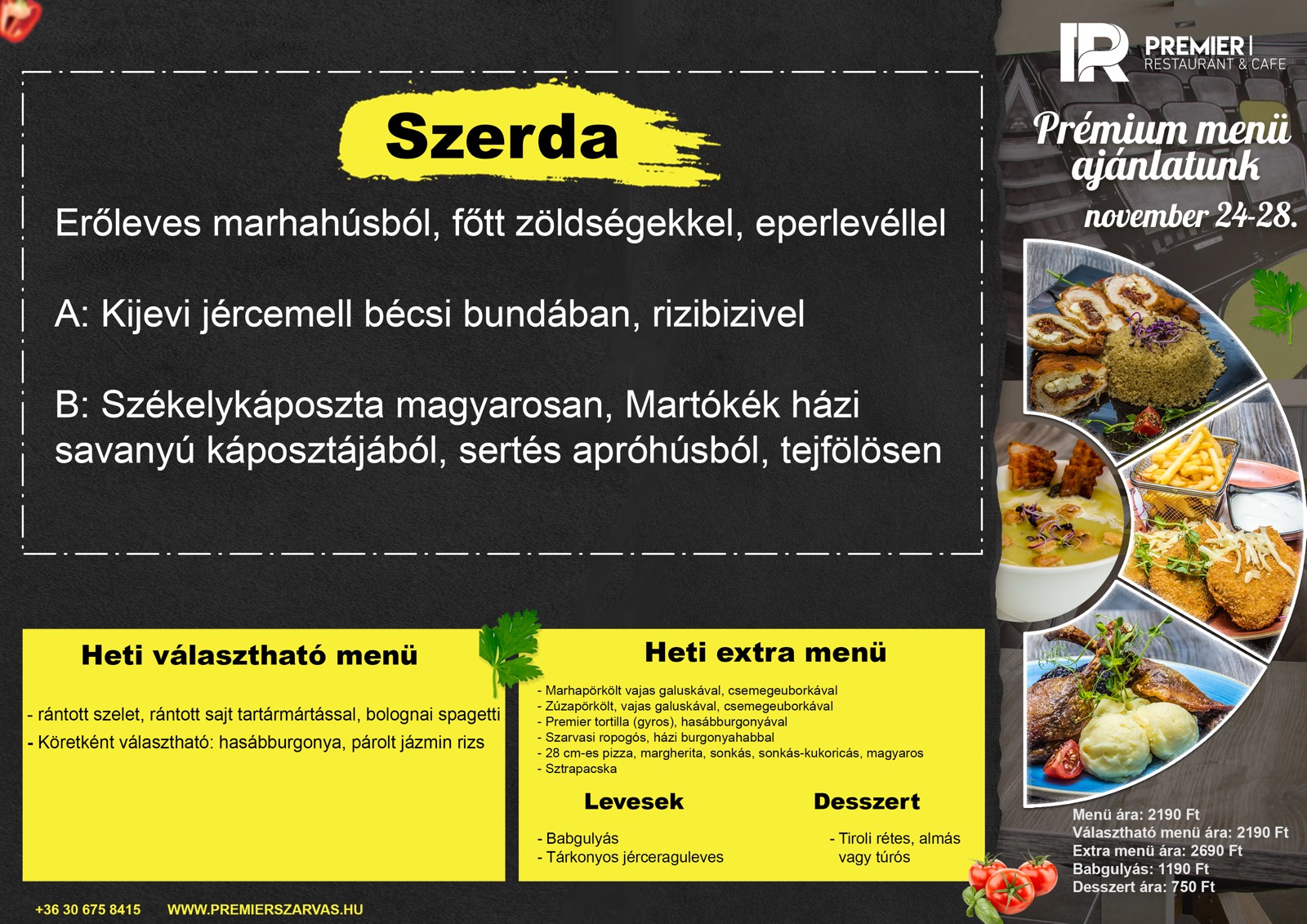 Nap ajánlatunk mellett kérhető egyéb ételek: Rántott szelet / Rántott sajt tartármártással / Bolognai spagetti. Hozzá köretként választható: hasábburgonya vagy párolt jázmin rizs.